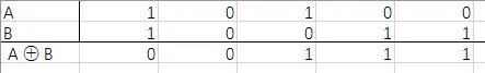 1 个比特的 XOR 运算规则如下: