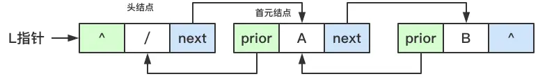 双向循环链表和双向链表的唯一区别在于循环,尾结点的next指针会指向头结点,s头结点的prior指针会指向尾结点