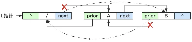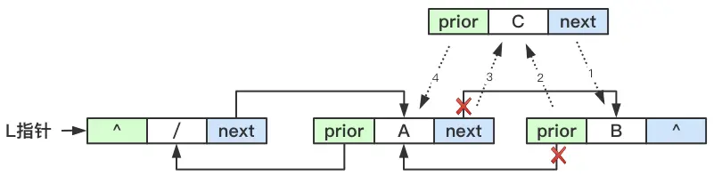 相比于单向链表,双向链表增了一个指向前驱的prior指针,通过prior可以方便的找到当前结点的前驱结点。