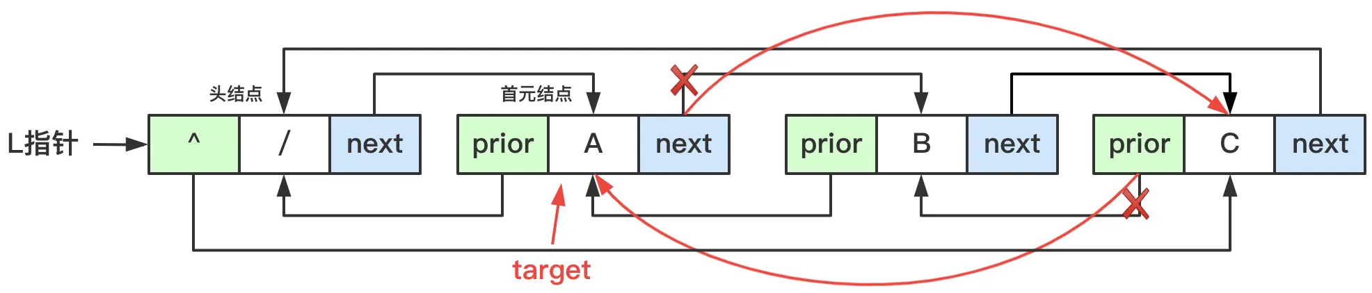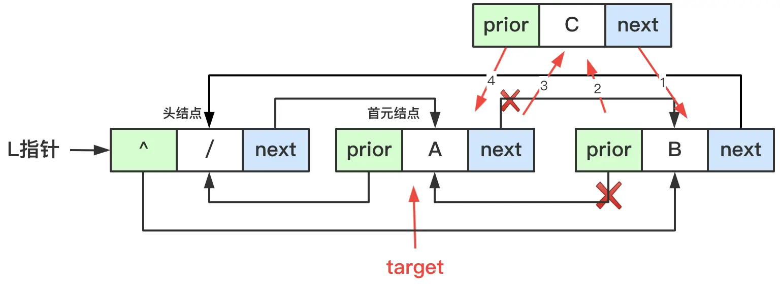 target->next->prior = target;