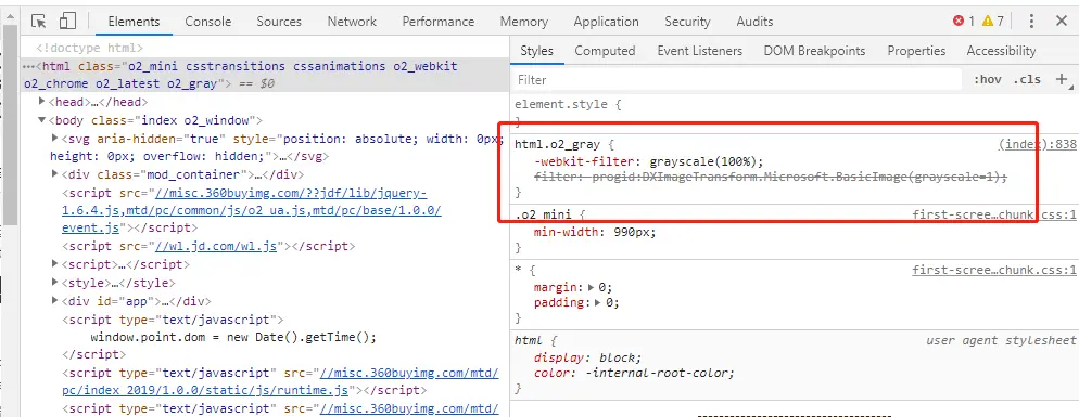 打开某东的首页,按下 F12 后,看到在 html 上面增加了一个样式: