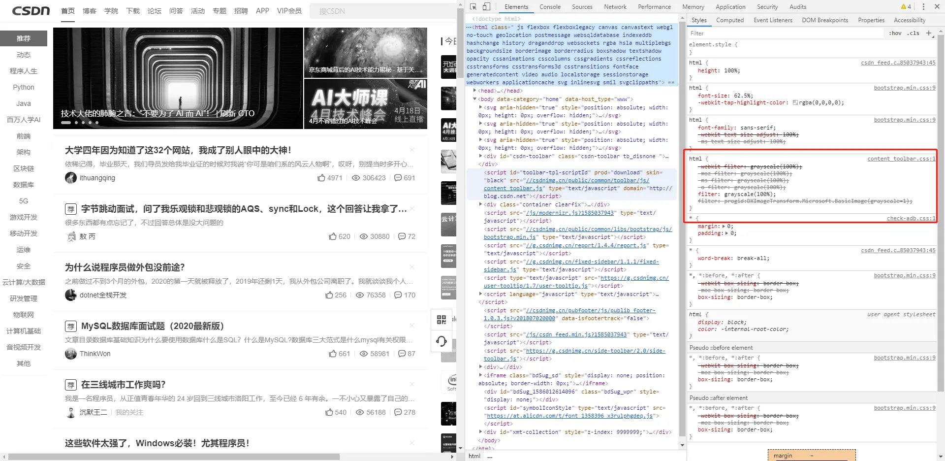 可以看到,这两个网站的这个这个 css 修饰的对象都是 html ,是作用全局的,而且在 CSDN 的代码要比某东的长很多,首先讲一下,长不一定是好的,但是这个代码一看就要兼容性好很多。