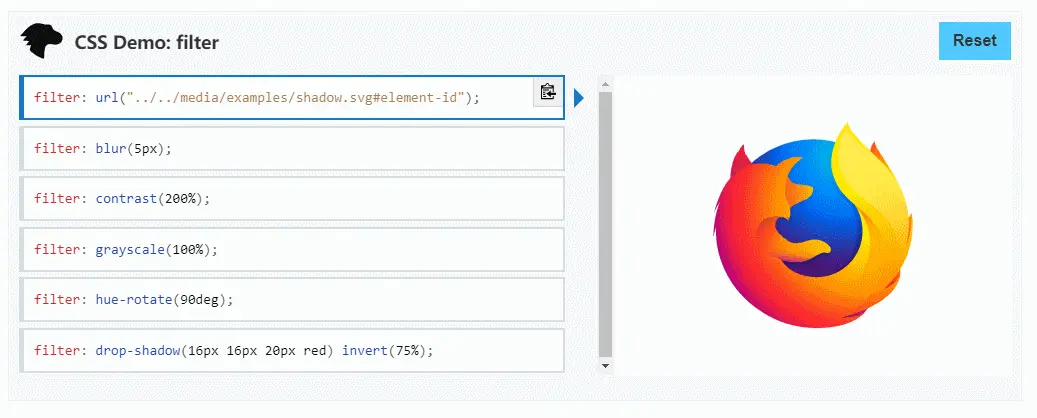 filter CSS属性将模糊或颜色偏移等图形效果应用于元素。滤镜通常用于调整图像,背景和边框的渲染。