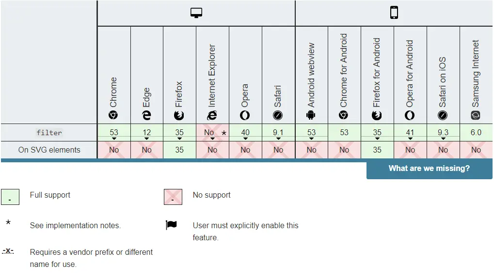 最后再看下 filter 对浏览器的兼容性,同样是由官方提供: