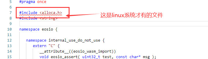 需要注意的是,在windows环境下开发是一定会报错的,因为alloca.h文件是linux系统下才有的,但是不影响开发。若是需要编译合约,则需要到linux环境或其他工具下才行