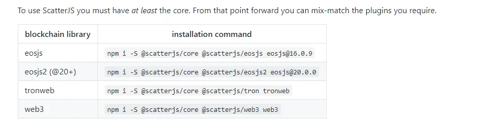 npm i -S @scatterjs/core @scatterjs/eosjs2 eosjs@20.0.0