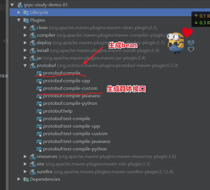 第一个命令执行完. 在 target目录里找就行了. 第二个命令也是找就行了. 然后将生成的Java文件拷贝到你的目录里.就可以了, 类似于Mybatis的mapper插件.