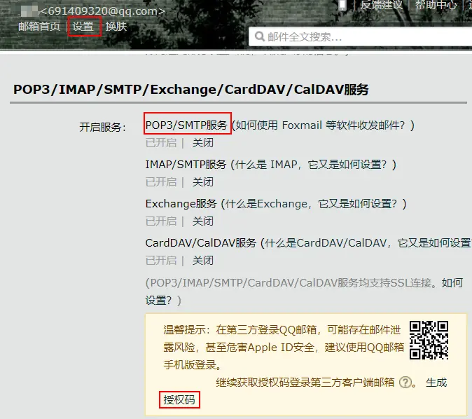 开启SMTP服务(Simple Mail Transfer Protocol 简单邮件传输协议)