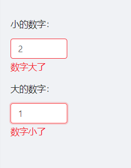 在表单校验中,我们有时候会有一些业务场景是有两个表单校验规则是有联动逻辑关系的。比如两个数字输入框,第一个的输入数字必须小于第二个输入的数字。当我们输入第一个数字为2的时候,再输入第二个数字为1,第二个输入框的校验就会提示报错。