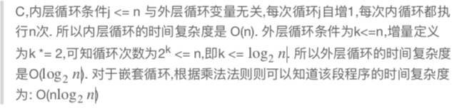 /*将时间复杂度为O(logn)的代码循环N遍的话,那么它的时间复杂度就是 n * O(logN),也就是了O(nlogN)*/