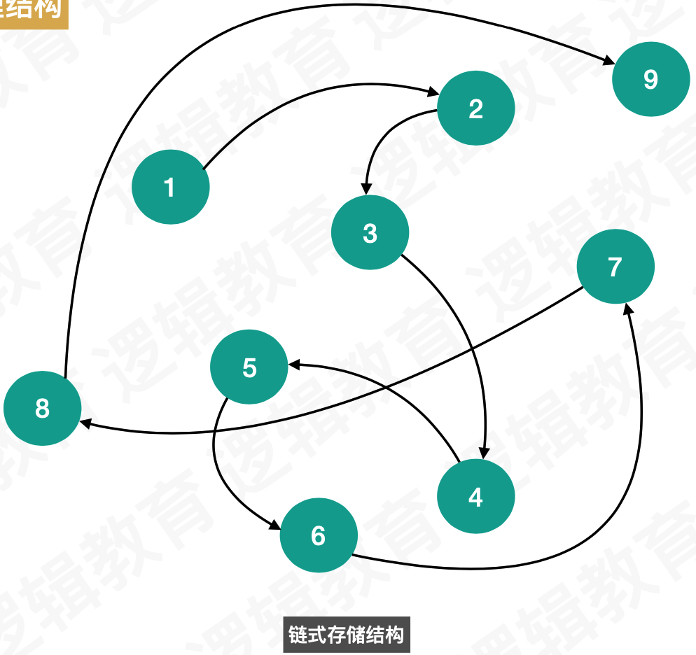 数据元素存放在任意的存储单元中,这组存储单元可以是连续的,也可以不是不连续的,数据元素的存储关系并不能反映其逻辑关系,需要借助指针来表示数据元素之间的逻辑关系。每一个元素包含了下一个元素的地址信息,通过指针保存。物理上不是一一对应的,而逻辑上是一一对应的。