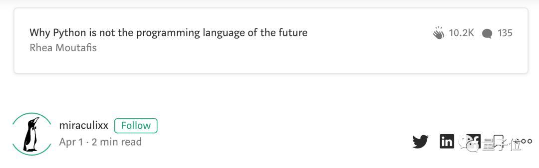 一位名叫Rhea Moutafis的网友认为,Python不会是“未来的编程语言”。观点仅发布数日,便得到了10.2k的点赞。