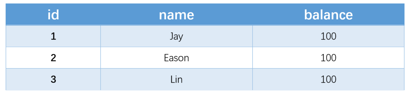 insert into account(id,name,balance) value(6,'Li',100);