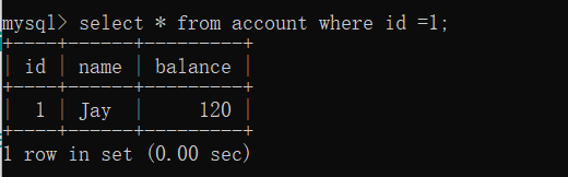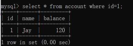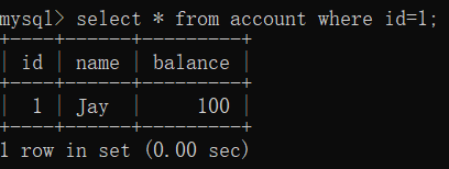 接着回事务A的窗口,再查account表id=1的数据,结果如下: