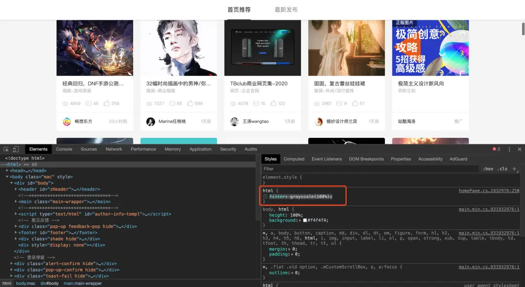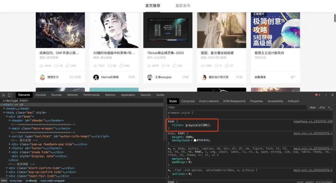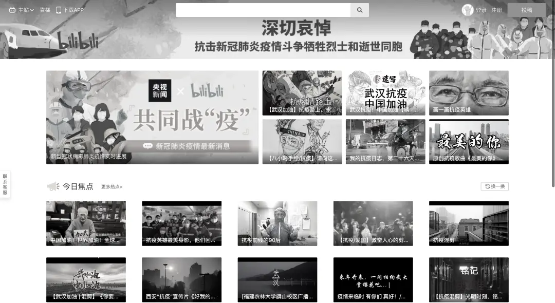 我们看到很多网站都变成了灰色,像站酷,百度,B站等等。