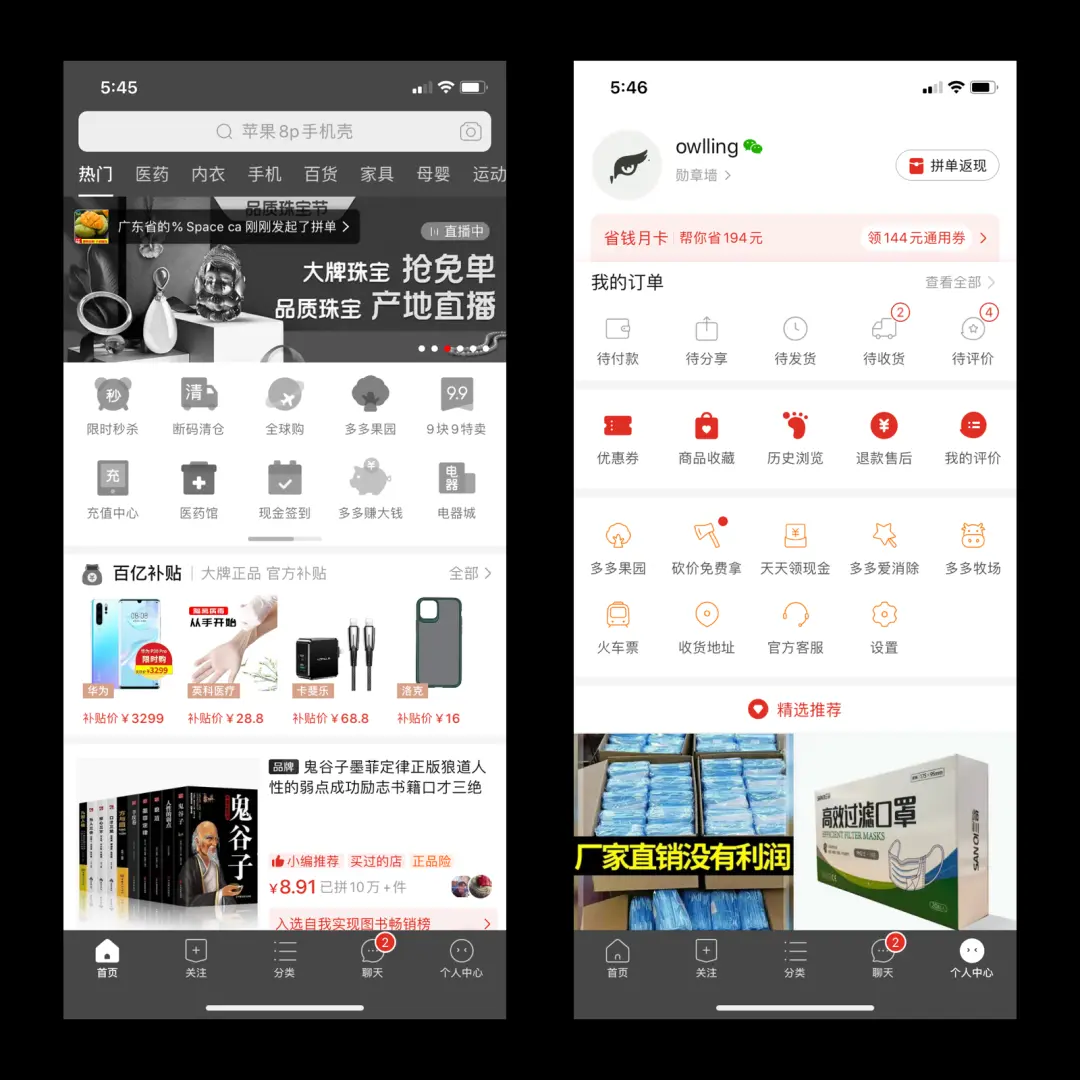 两端其实都是修改了头部和底部以及首页金刚入口的样式,相对于Web端的一句代码移动端的修改成本要高一些。