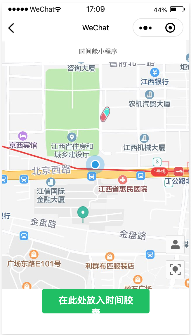 toReset() { //复位后调整缩放比,提升体验 this.mapCtx.moveToLocation(); this.setData({ scale: 18 }) }添加时间胶囊