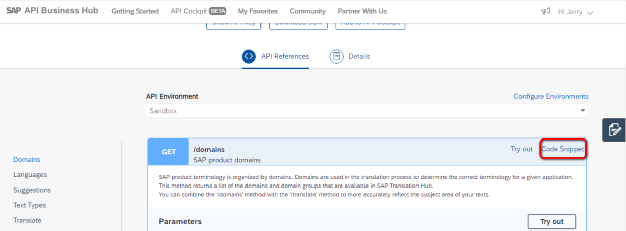 API References里,点击Code Snippt,