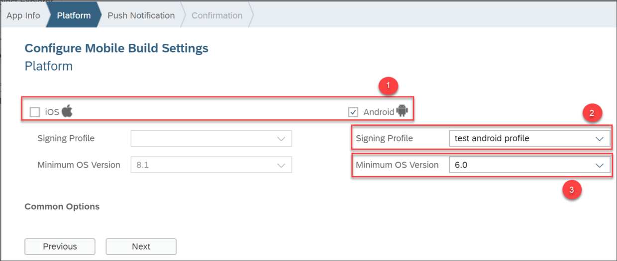选择应用运行的移动平台类型: