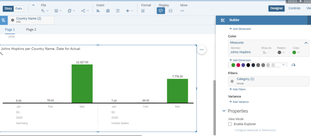 可以利用SAP Analytics Cloud自带的Compare to Previous Day功能,将当天的值同前一天的值相比较: