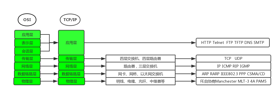 它只有四层,相当于五层协议中数据链路层和物理层合并为网络接口层。