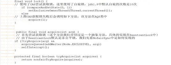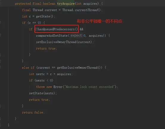 Reentrantlock获取锁的大部分逻辑都是AbstractQueuedSynchronizer类中,该类中有一个抽象的方法:tryAcquire,