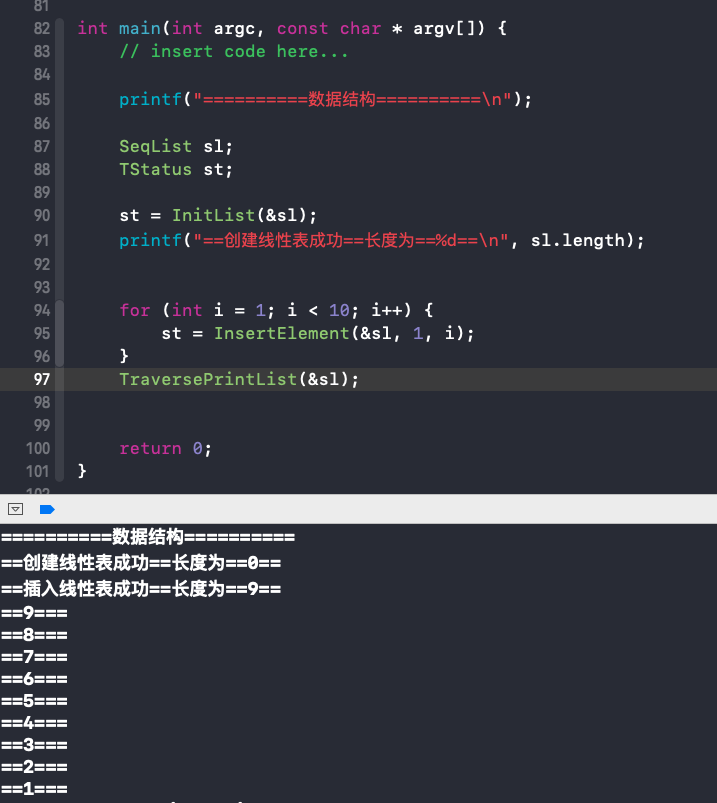 printf("==创建线性表成功==长度为==%d==", sl.length);