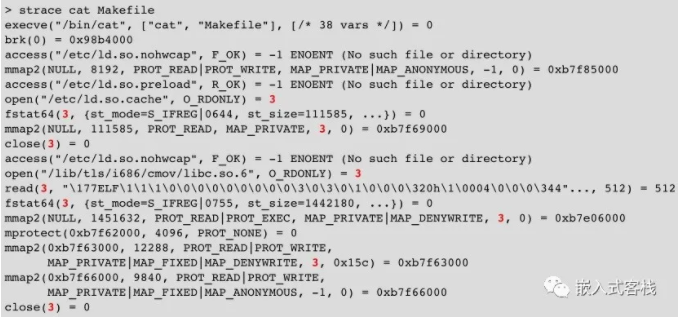 - 例如,轻松查找打开尝试(open()),文件访问(read() /write() )和内存分配(mmap2() )。无需访问源代码即可完成!