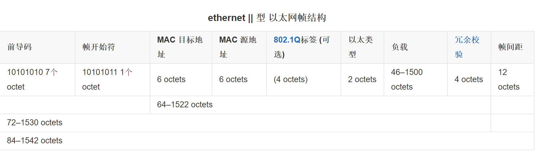以太帧有很多种类型。不同类型的帧具有不同的格式和MTU值。但在同种物理媒体上都可同时存在。