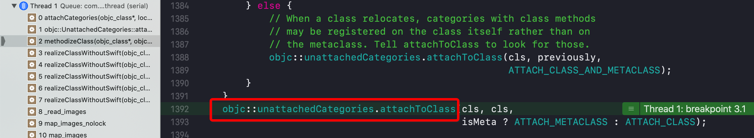 objc::unattachedCategories.attachToClass(cls, cls,