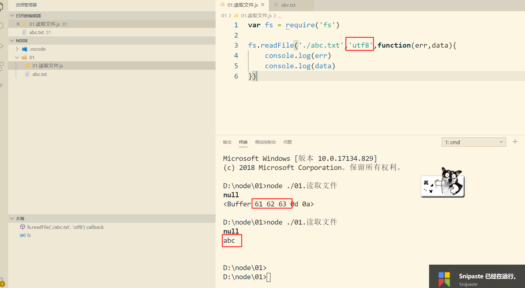 回调会传入两个参数 (err, data),其中 data 是文件的内容。