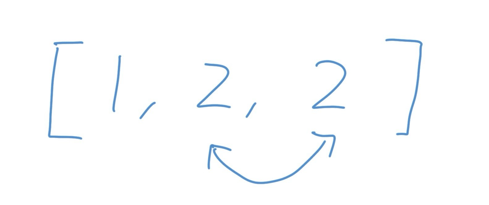 比如下图当中,我们更换两个2的顺序,整个序列的字典序是没有变化的,要使得字典序变化一定要交换不同的元素。所以这个解法是可行的。