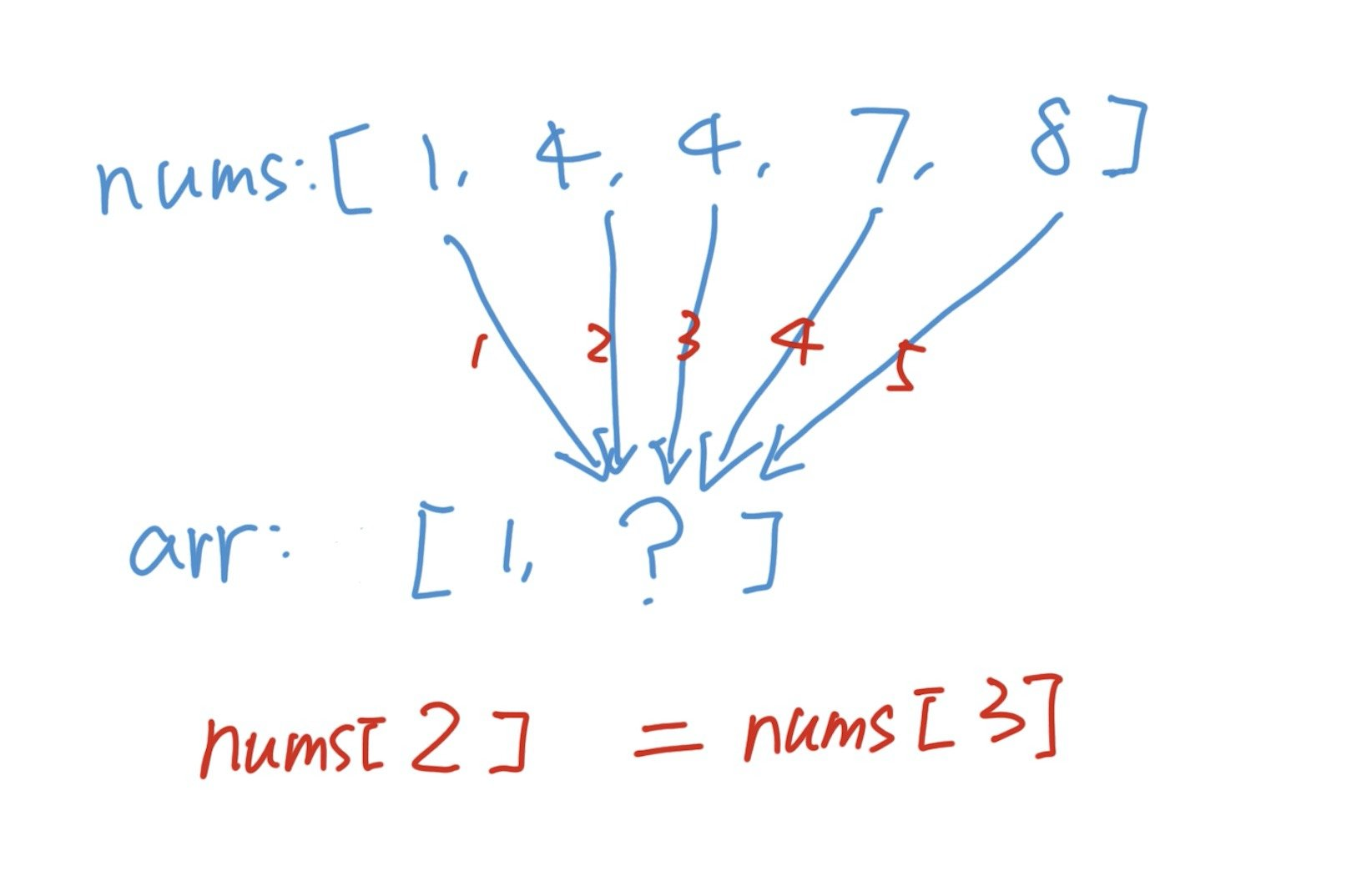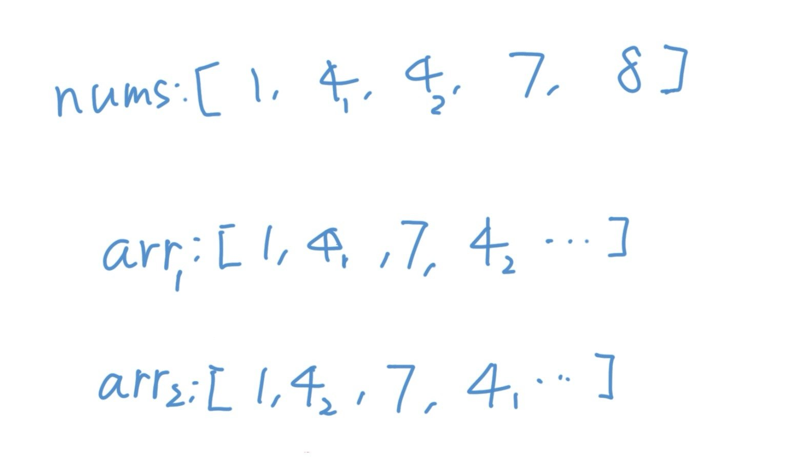 第二种情况也比较容易想明白,还是同样的例子,我们给数组当中的两个4编号,一个编号是,一个是
