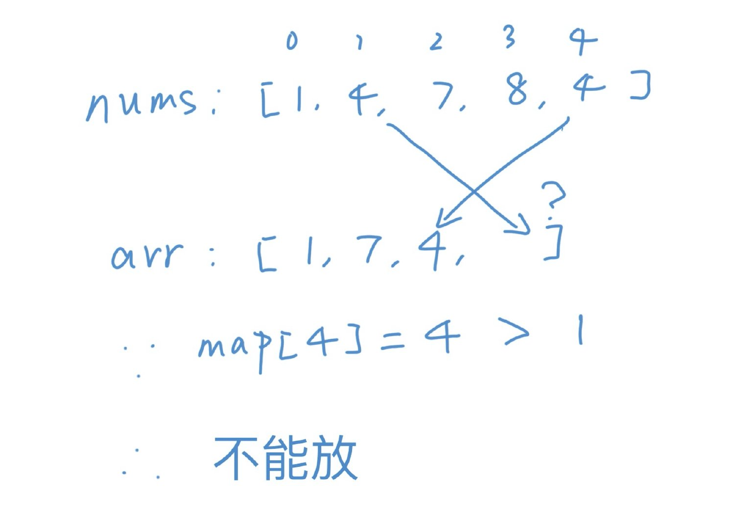 在一次递归当中,我们放置了两个4,放了第二个4之后,map[4] = 4,当我们回溯弹出第二个4的时候,这个时候的map[4]应该是多少?