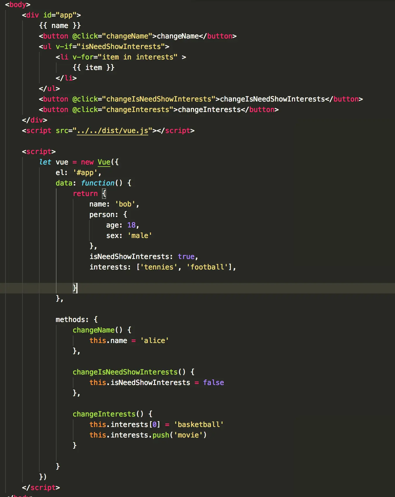 我们可以看到当采用了vuejs以后,我们不需要直接关心数据和dom是如何关联的