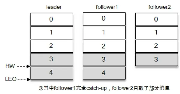 - LEO:低水位,各个副本维护自己的低水位,即下一个要从leader副本同步的消息offset