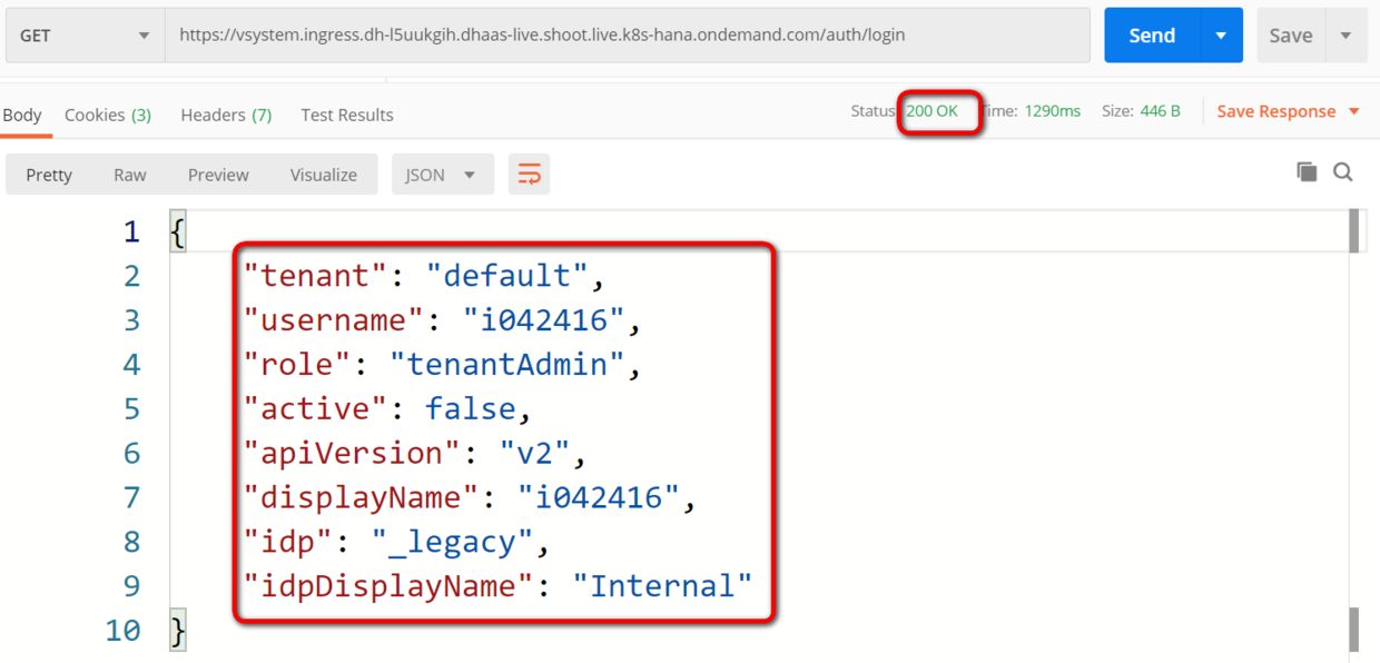 使用这个login API endpoint: vsystem.ingress.dh-l5uukgih.dhaas-live.shoot.live.k8s-hana.ondemand.com/auth/login 注意user name的规范是tenant的名称加反斜杠加用户名。