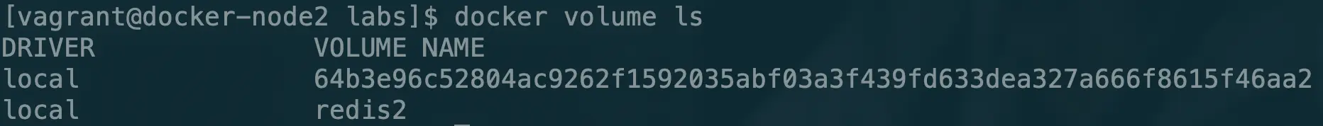 docker run -d -v redis2:/data --name redis2 redis