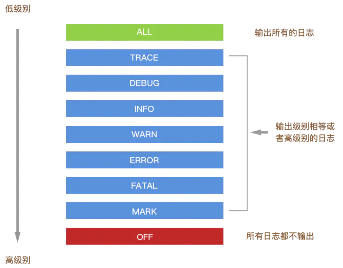 // 日志种类的level表示,日志输出等级过滤。输出等级以上的日志。