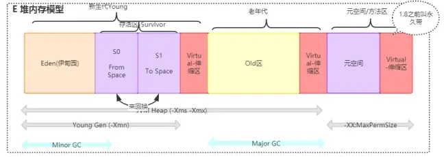 | young新生代 | Tenured老年代 | JVM options参数 |