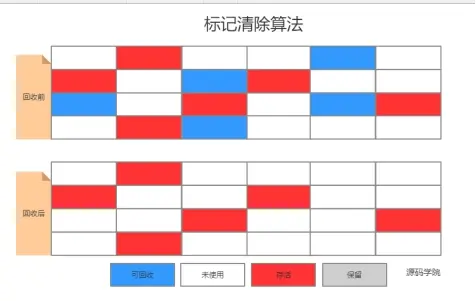 该算法分为“标记”和“清除”阶段:首先标记出所有需要回收的对象,在标记完成后统一回收所有被标记的对象。它是最基础的收集算法,后续的算法都是对其不足进行改进得到。这种垃圾收集算法会带来两个明显的问题: