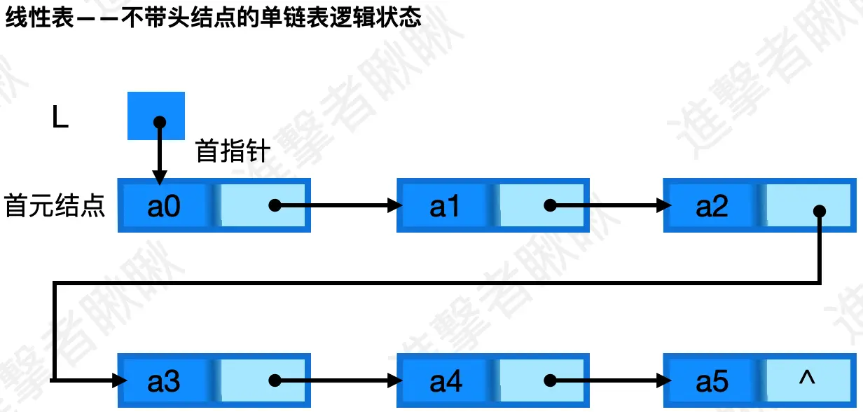 - 单链表采⽤链式存储结构,用一组任意的存储单元存放线性表的元素