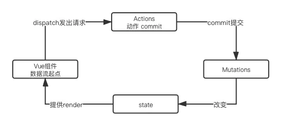 state:存放数据,mutation修改数据会动态修改所有的调用此变量的值getter:获取数据mutation:直接修改状态action:action类似mutation,是个装饰器,包裹mutation,使之可以异步,action提交的是mutation而不是直接修改状态moudle(mapAction):模块化VueX