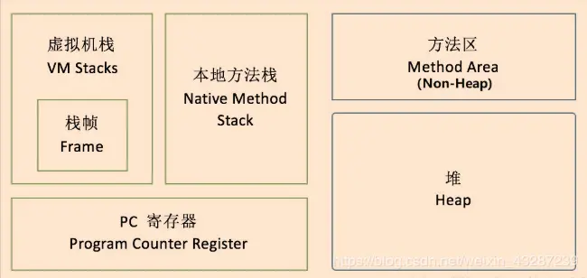 其中方法区和堆被JVM中多个线程共享,比如类的静态常量就被存放在方法区,供类对象之间共享。