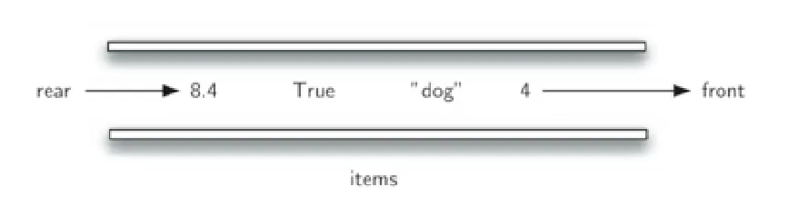 当数据项加入队列,首先出现在队尾,随着队首数据项的移除,它逐渐接近队首。