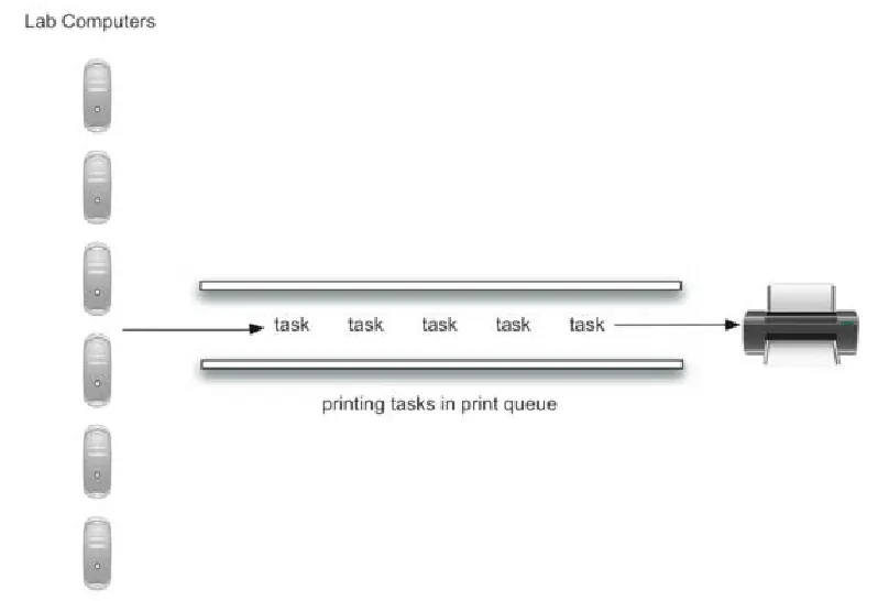 多人共享一台打印机,采取“先到先服务”的队列策略来执行打印任务