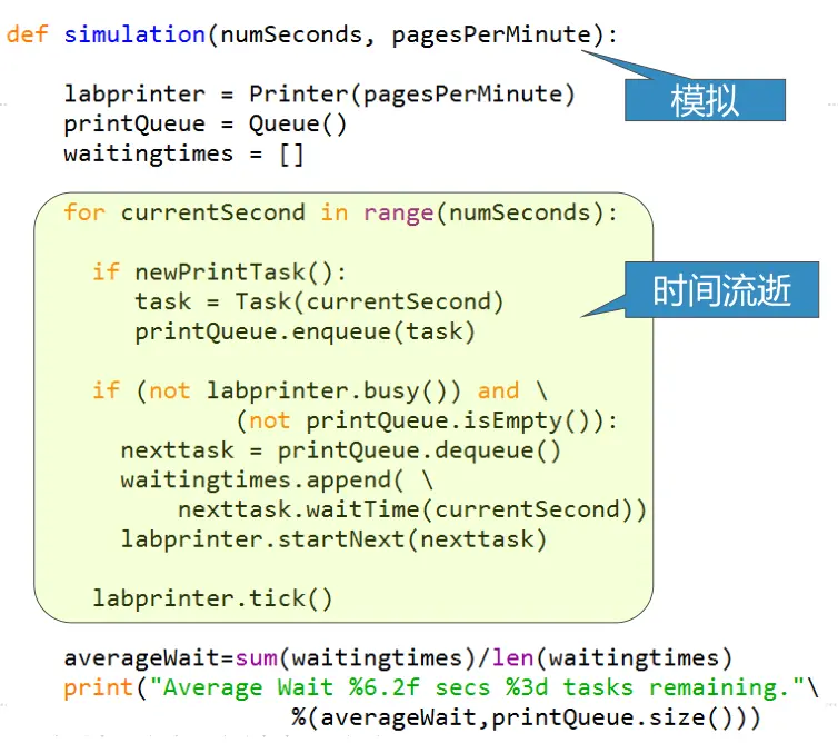 我们要用一段程序来模拟这种打印任务场景,然后对程序运行结果进行分析,以支持对打印机模式设定的决策。