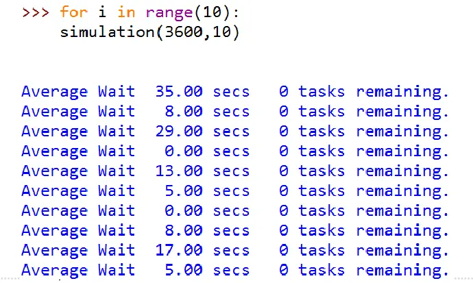 - 确定生成概率:实例为每小时会有10个学生提交的20个作业,这样,概率是每180秒会有1个作业生成并提交,概率为每秒1/180。