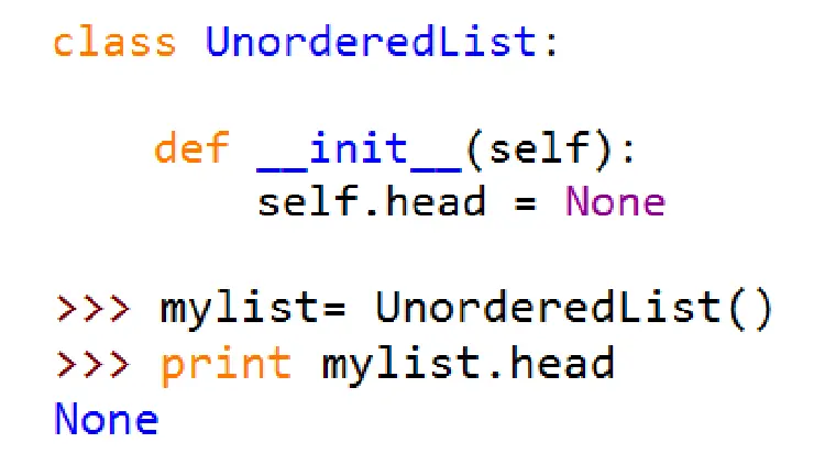 - 设立一个属性head,保存对第一个节点的引用空表的head为None