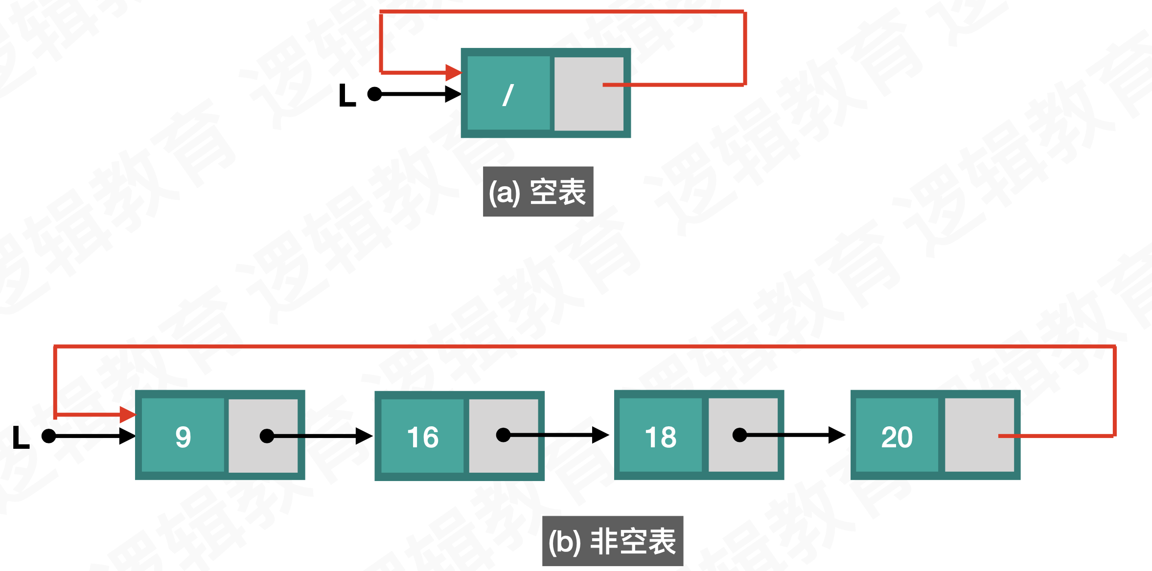 for (target = *L; target->next != *L; target = target->next);//寻找链表的尾节点